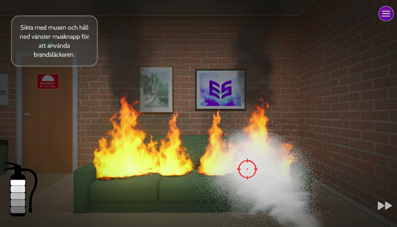 Picture 2-5. Game moments from EduTechSmart’s courses, including Fire Safety, where the participant gets to extinguish a fire.